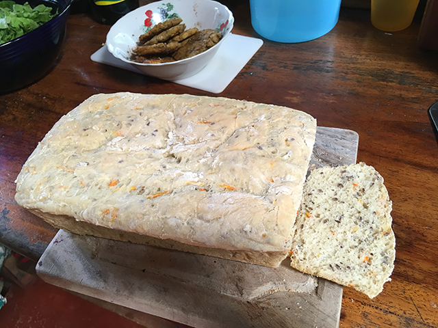 Another popular bread is made with flax seeds and just enough grated carrots to provide come color…